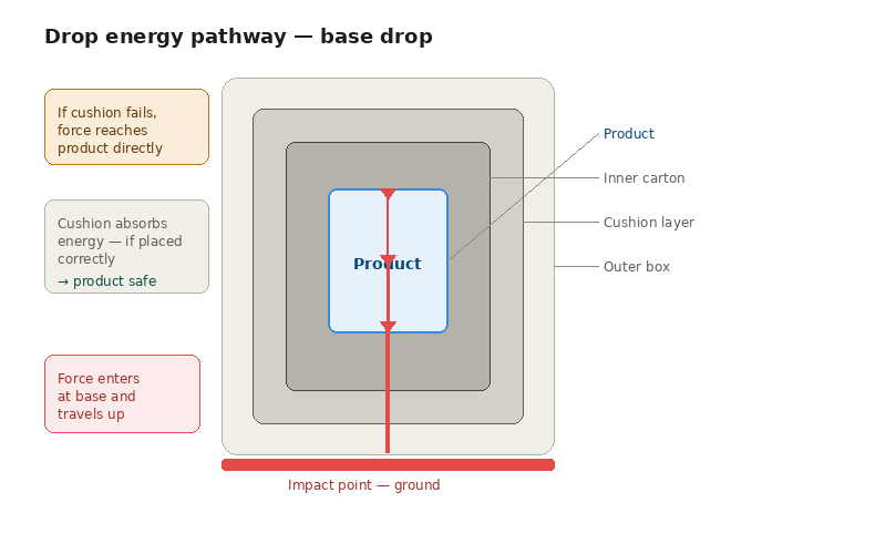But here is what most people misunderstand: the drop test is not trying to break your box. It is trying to break your product. The box is just the delivery mechanism. If your product is failing the drop test, the question is not "how do I make the box survive the drop?" The question is "why is energy from that drop reaching my product?"