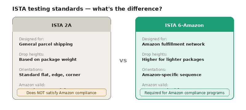 If you are selling on Amazon, test to ISTA 6-Amazon. Not ISTA 2A. Not your own internal protocol. The standard Amazon will actually evaluate you against.